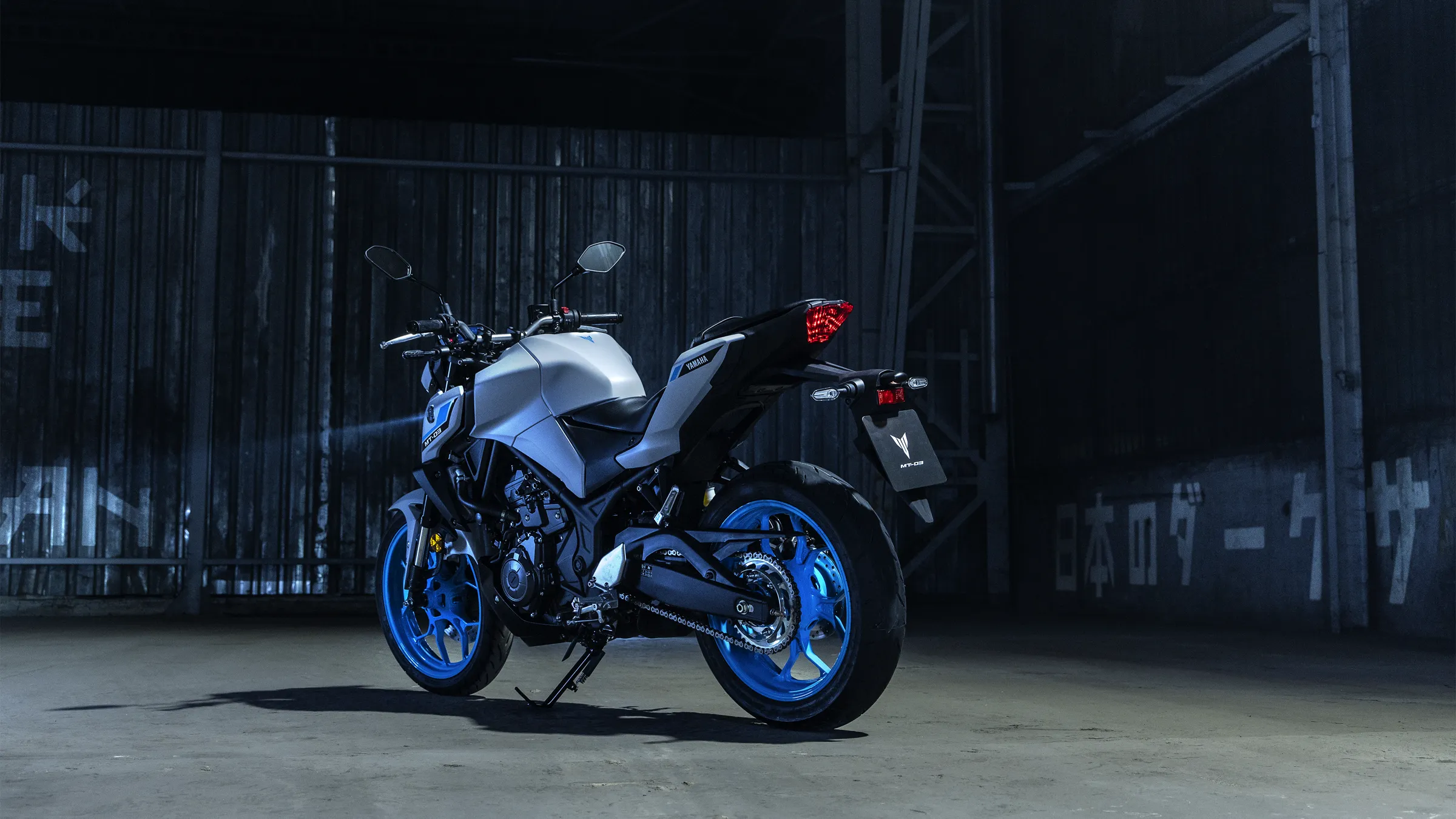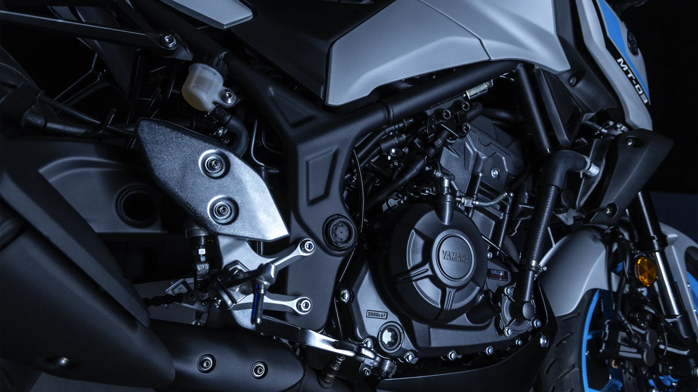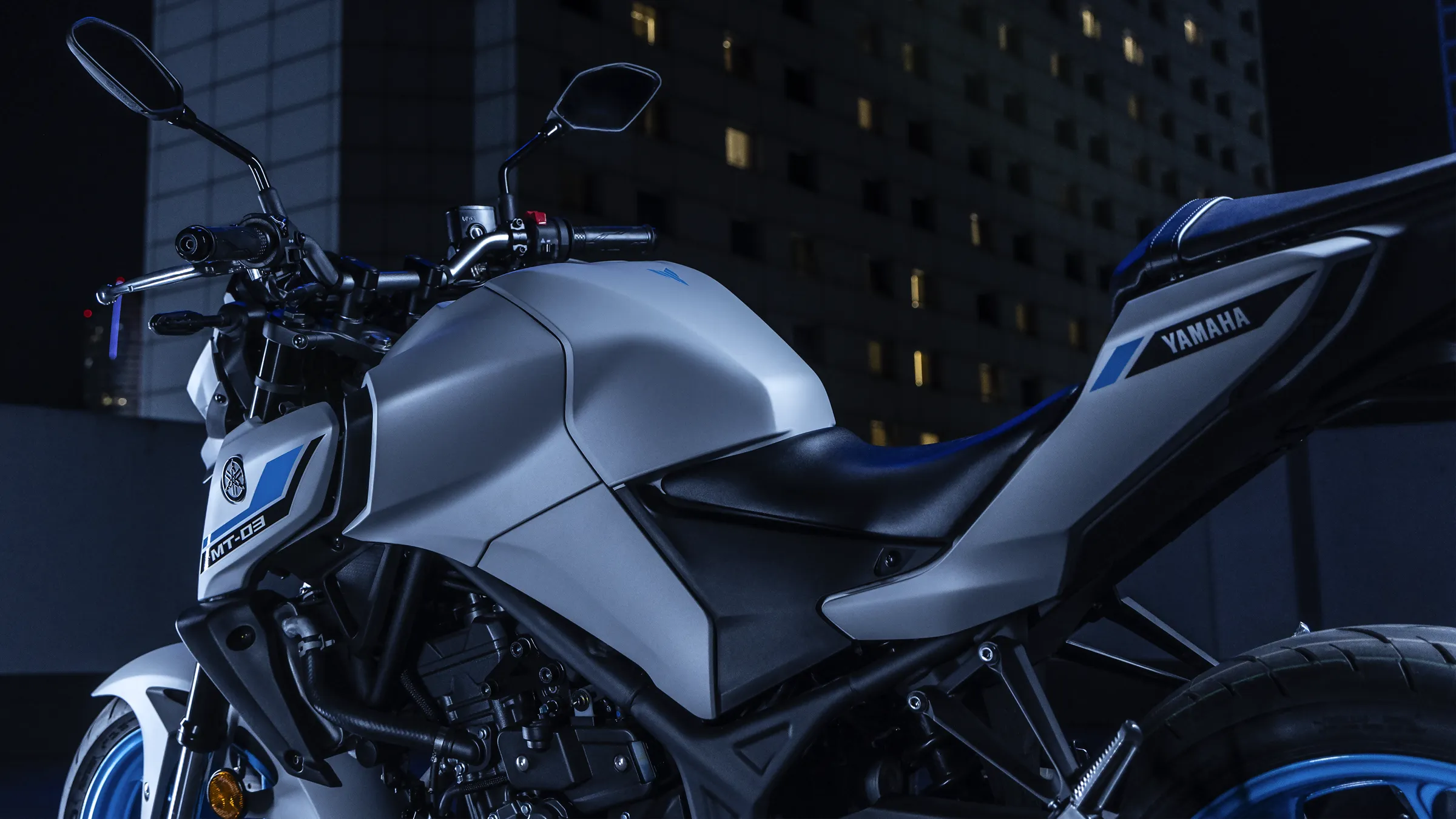 Inspiriert von den grösseren Yamaha Hyper-Naked-Modellen kommt der aggressive Look der MT-03 direkt von The Dark Side of Japan.