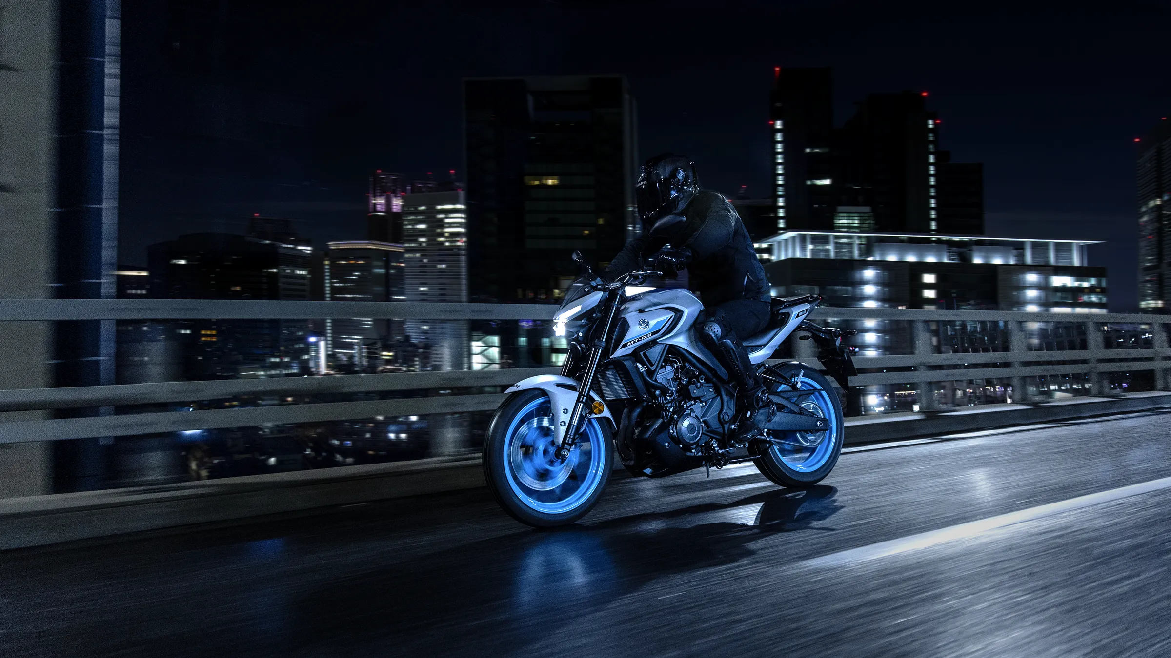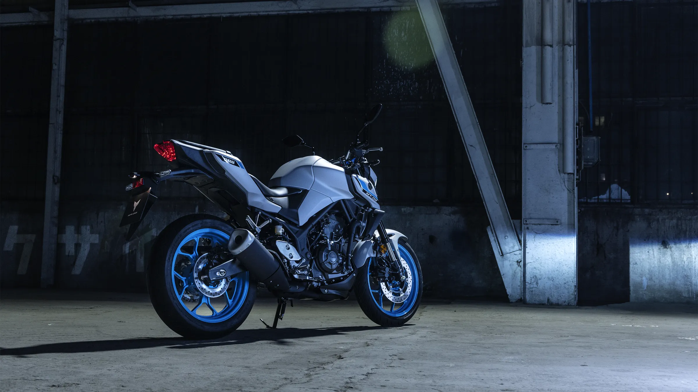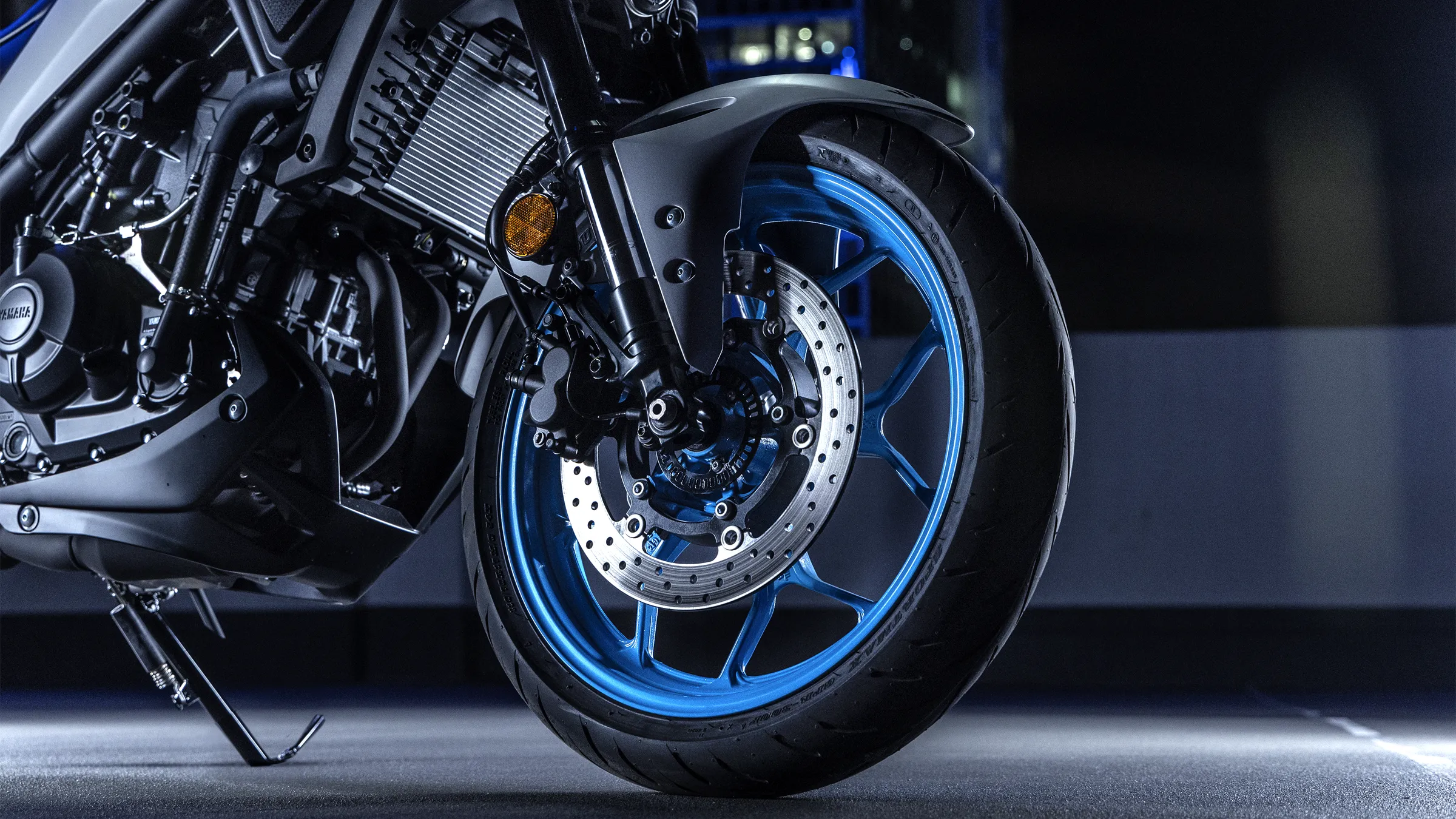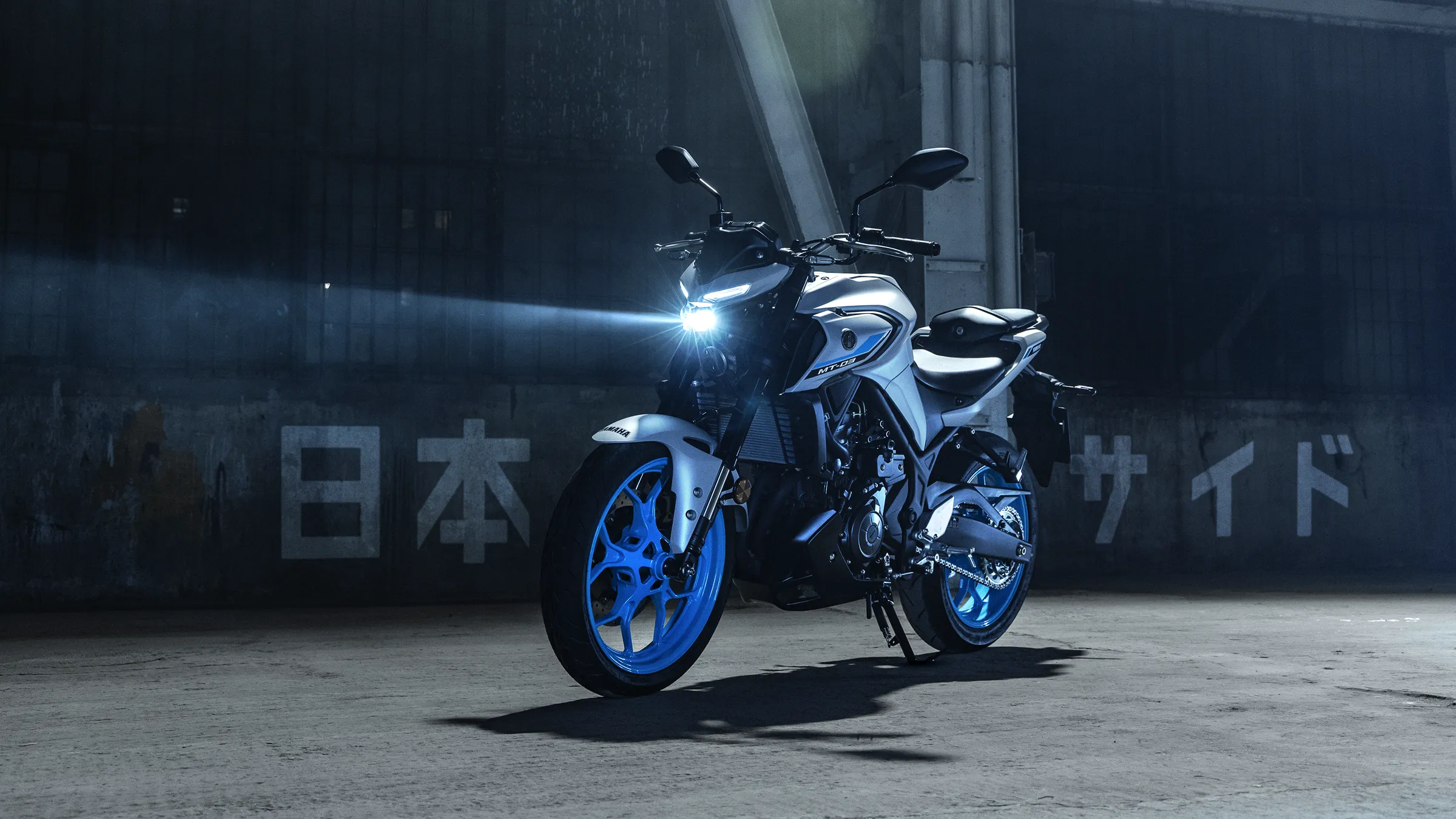 Inspiriert von den grösseren Yamaha Hyper-Naked-Modellen kommt der aggressive Look der MT-03 direkt von The Dark Side of Japan.